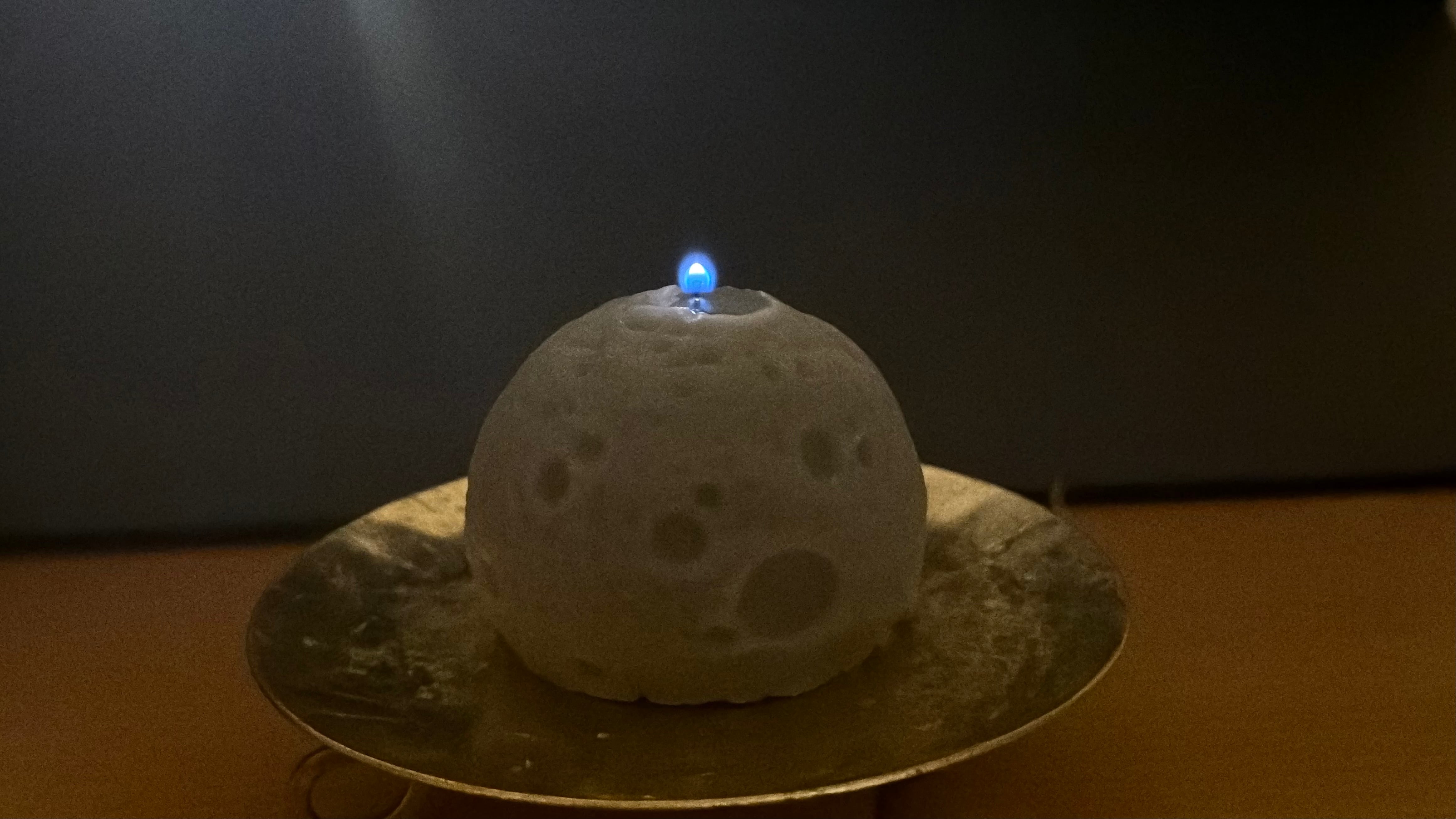 ミツロウと麻の軸で作り上げ、黒の食紅で着色した天然素材のミツロウキャンドル、「月ほのか」。